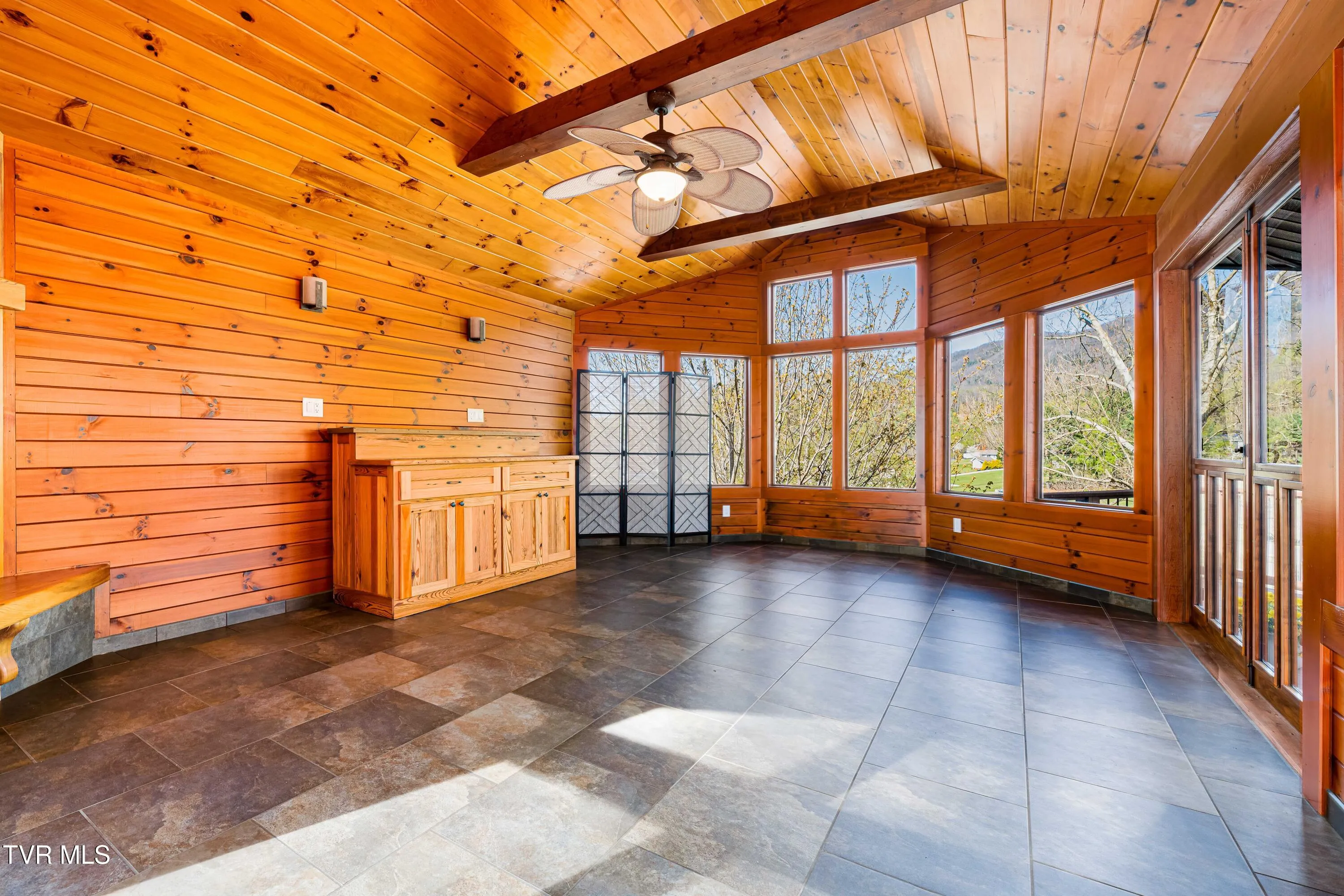 Step inside to an inviting open floor plan crowned by a tongue-and-groove pine cathedral ceiling with exposed beams. Panoramic windows and Andersen low-E glass frame sweeping views of the lake and mountains. A gas-log fireplace anchors the living area, which flows seamlessly into the custom chef’s kitchen featuring maple cabinets, quartz countertops, a large center island, stainless-steel Samsung appliances, porcelain tile floors, and a built-in window seat with extra storage. A triple sliding glass door opens to the main deck–perfect for morning coffee, al fresco meals, or simply soaking in the scenery.